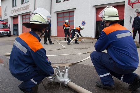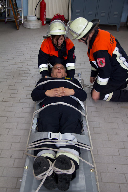 Am Samstag, den 05.04.2014 stellten sich die 23 Lehrgangsteilnehmer unter den Augen von Kreisbrandmeister Wolfgang Dümmler der Prüfung. Auch hier gab es einen theoretischen und einen praktischen Teil. In der Theorie mussten die Feuerwehrkameradinnen und -kameraden einen Fragebogen mit 50 Fragen beantworten. In der praktischen Abnahme hatten sich die Ausbilder folgende Aufgaben ausgedacht: