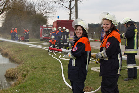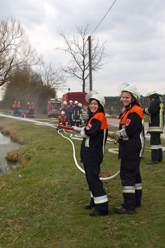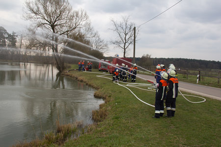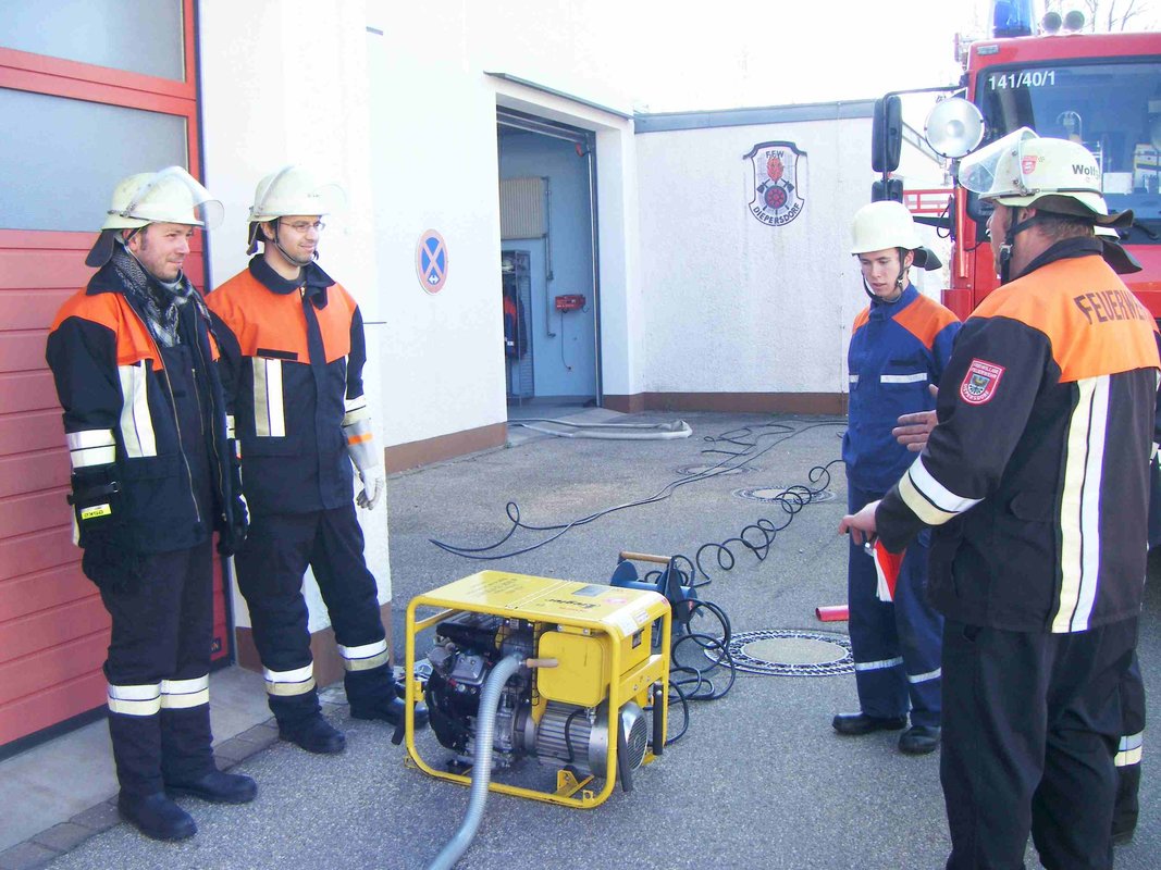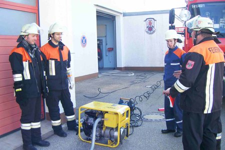 Im Vordergrund der praktischen Ausbildung stand natürlich die Löschwasserversorgung (Hydranten und offene Gewässer), die Gruppe im Löscheinsatz und die Gruppe im THL (Technische Hilfe Leistung) Einsatz.