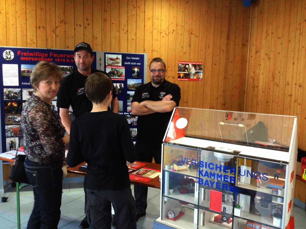 Die Kameradinnen und Kameraden der FF Diepersdorf ließen es sich natürlich nicht nehmen und waren an beiden Tagen wieder mit einem Infostand vertreten. Man konnte sich über die Arbeit der Feuerwehr informieren und auch das immer aktuelle Thema Rauchmelder mit den Kameraden diskutieren. Zur Veranschaulichung hatte die Bayerische Versicherungskammer ein Rauchhausmodell zur Verfügung gestellt. So konnte eindrucksvoll die Rauchausbreitung demonstriert und die hohe Wirksamkeit zur Rettung von Menschenleben durch Rauchmelder aufgezeigt werden.