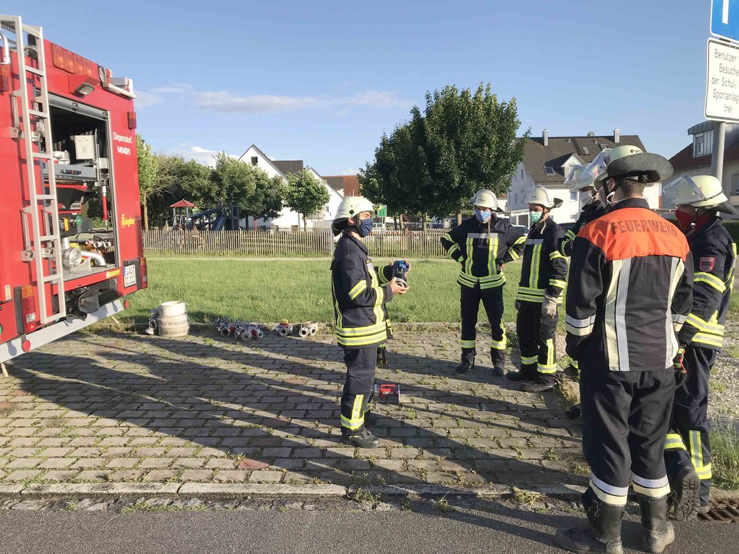 Die Kommandanten hatten zusammen mit den Gruppenführern das Ausbildungskonzept für diese Ausbildung angepasst. Die Kameraden*innen wurden im Vorfeld in Gruppen eingeteilt und kamen so getaktet zu unterschiedlichen Zeiten, um sich beim Umziehen möglichst wenig zu begegnen. Selbstverständlich haben wir während der Übung auch Mund Nasen Schutz getragen.