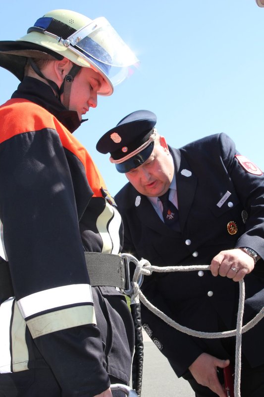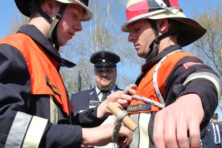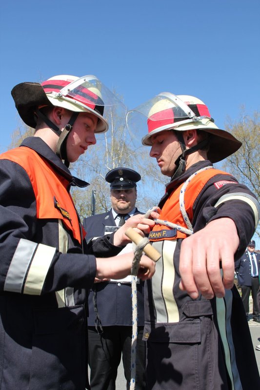 Dabei müssen die einzelnen Trupps vorher Knoten und Stiche nach Zeitvorgabe machen. Die Leistungsprüfung hat insgesamt 6 Stufen, welche nacheinander abgelegt werden. Bei der ersten Stufe gibt es das bronzene Abzeichen, danach folgt das Silberne, das Goldene bis hin zu Gold mit rotem Kranz (Stufe 6). Ab der Stufe 3 müssen noch Zusatzaufgaben erfüllt werden, welche sich auf die Themen Gerätekunde, Erste Hilfe, Erkennen von Gefahrgut- und Hinweiszeichen beziehen. Bei der letzten Stufe 6 müssen ebenfalls Fragen in Form eines Testbogens beantwortet werden. Der Gruppenführer muss grundsätzlich einen Fragebogen rund um die Feuerwehr beantworten.