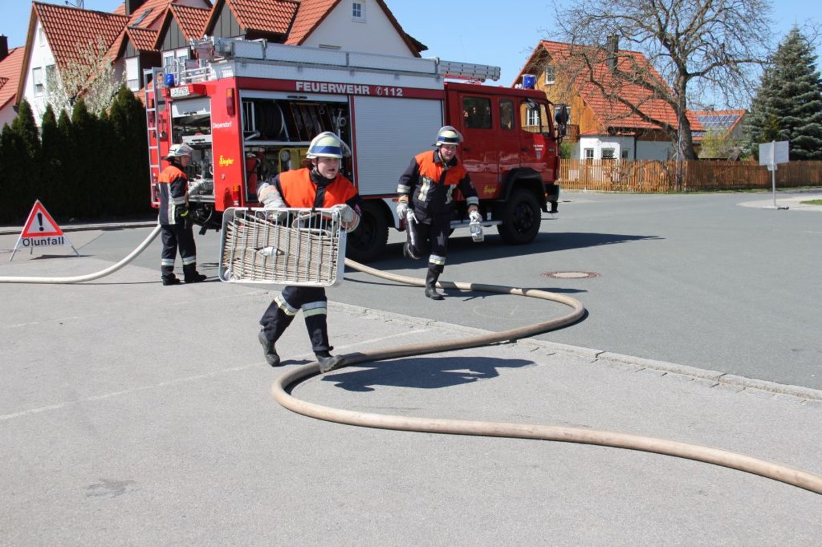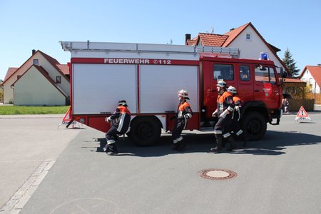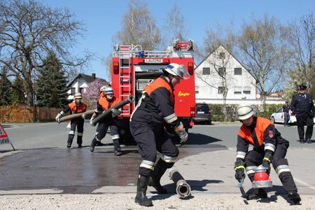 Die beiden Gruppen legten mit Erfolg die Leistungsprüfung „Die Gruppe im Löscheinsatz“ ab. Bei dieser gibt es insgesamt drei Varianten, wobei sich die Prüflinge gemeinsam mit dem Kommandanten aufgrund der vorhandenen einsatztaktischen Mittel vorher für eine Variante entscheiden. Die beiden Gruppen der FF Diepersdorf entschieden sich für die Variante 1: Außenangriff mit Wasserentnahme aus dem Hydranten.