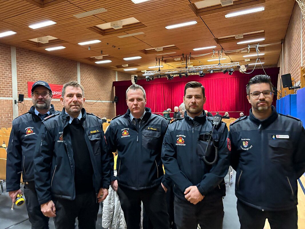 Bereits eine halbe Stunde vor Einlass trafen die Kameradinnen und Kameraden in der Turnhalle in Diepersdorf ein. Es wurde ein kurzer Rundgang gemacht, bei dem die Notausgänge, Notbeleuchtungen, Bestuhlungsplan und weiteres zur allgemeinen Sicherheit überprüft wurde.