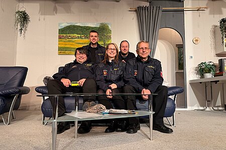 Während der Veranstaltung sitzen die Kameradinnen und Kameraden am Turnhallenrand um über alles einen Überblick zu haben.