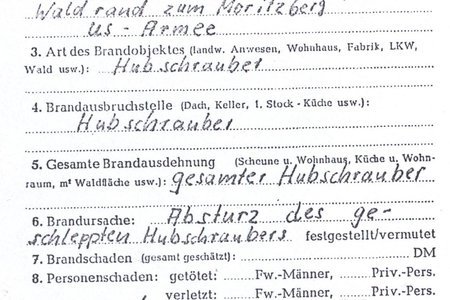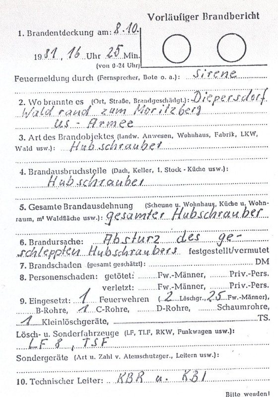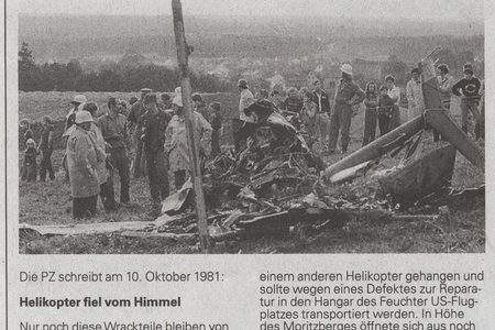 Diepersdorf – Am 10.10.1981 ereignete sich ein Hubschrauberabsturz mit glücklichem Ausgang. Ein etwas anderer Bericht einer Einsatzkraft.