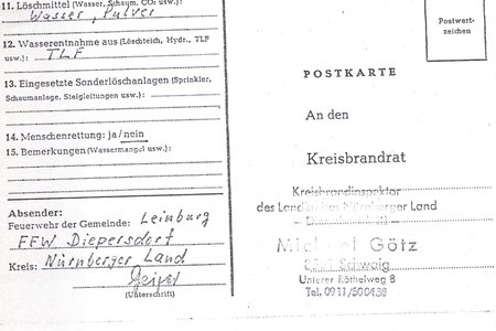 Kurz darauf ging bereits der Alarm über Sirene ein. Der Flughafen Nürnberg hatte der Polizeiinspektion Lauf den Absturz eines US Militärhubschraubers gemeldet. Daraufhin löste die PI Lauf Alarm für die Feuerwehren aus Leinburg und Diepersdorf aus.