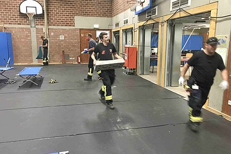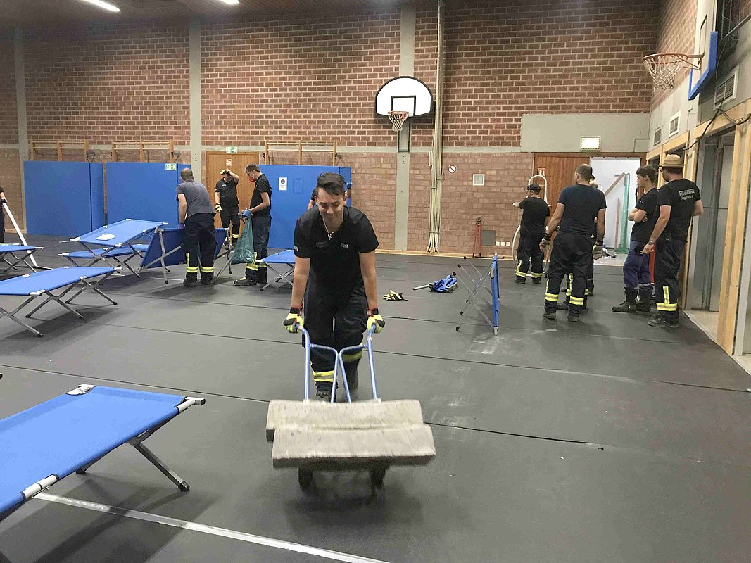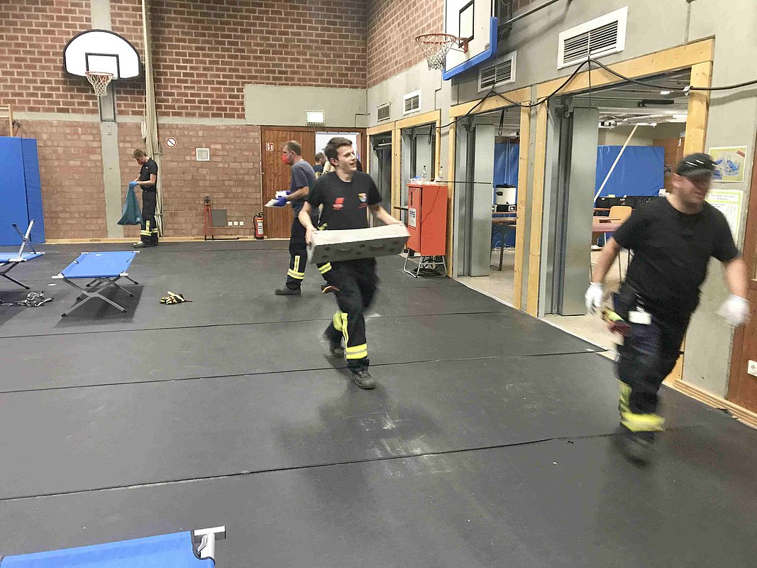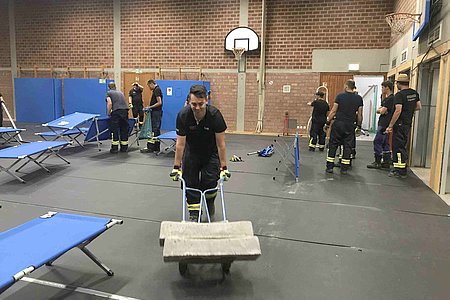 Abbau der Notunterkunft in der Turnhalle in Diepersdorf