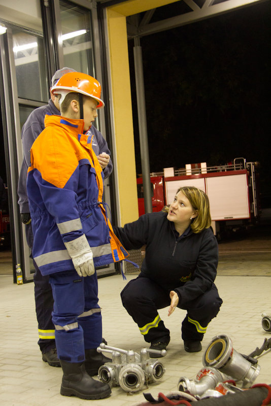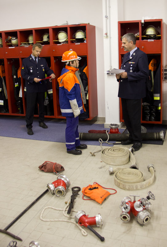 An der letzten Station waren dann verschiedene Armaturen ausgelegt. Darunter befanden sich alle notwendigen Armaturen zur Wasserentnahme aus offenem Gewässer, dem Unterflur- oder dem Überflurhydrant. Die Schiedsrichter hielten die entsprechenden Karten mit der jeweiligen Aufschrift bereit – der Jugendliche zog ein Los und musste entsprechend der Aufschrift die richtigen Armaturen aus dem Pool entnehmen. Auch das Benennen der Armaturen gab natürlich Punkte.