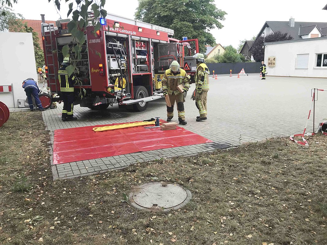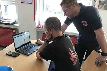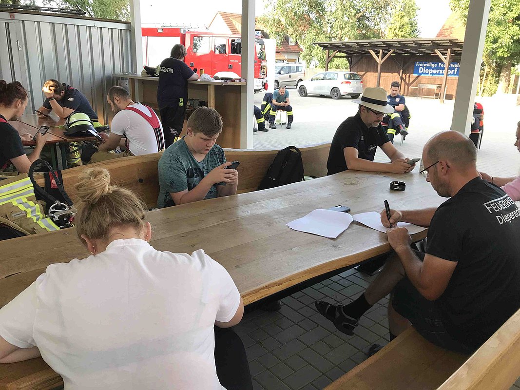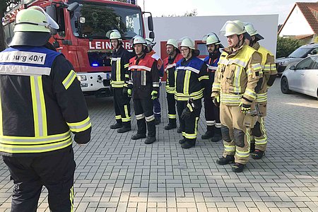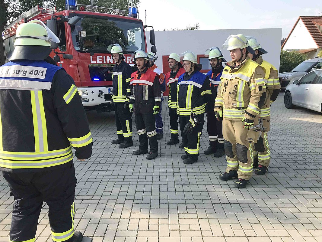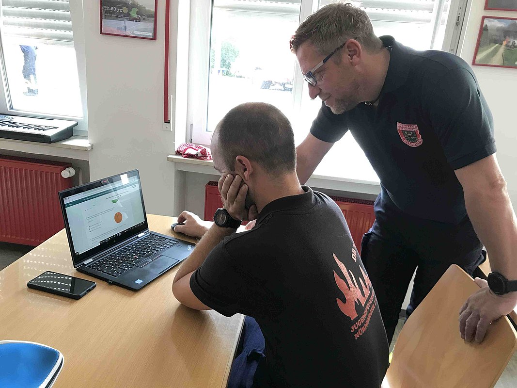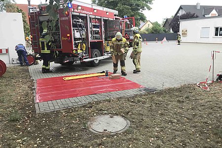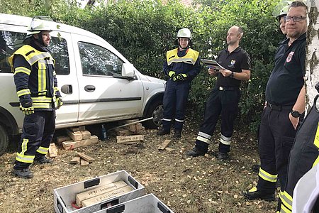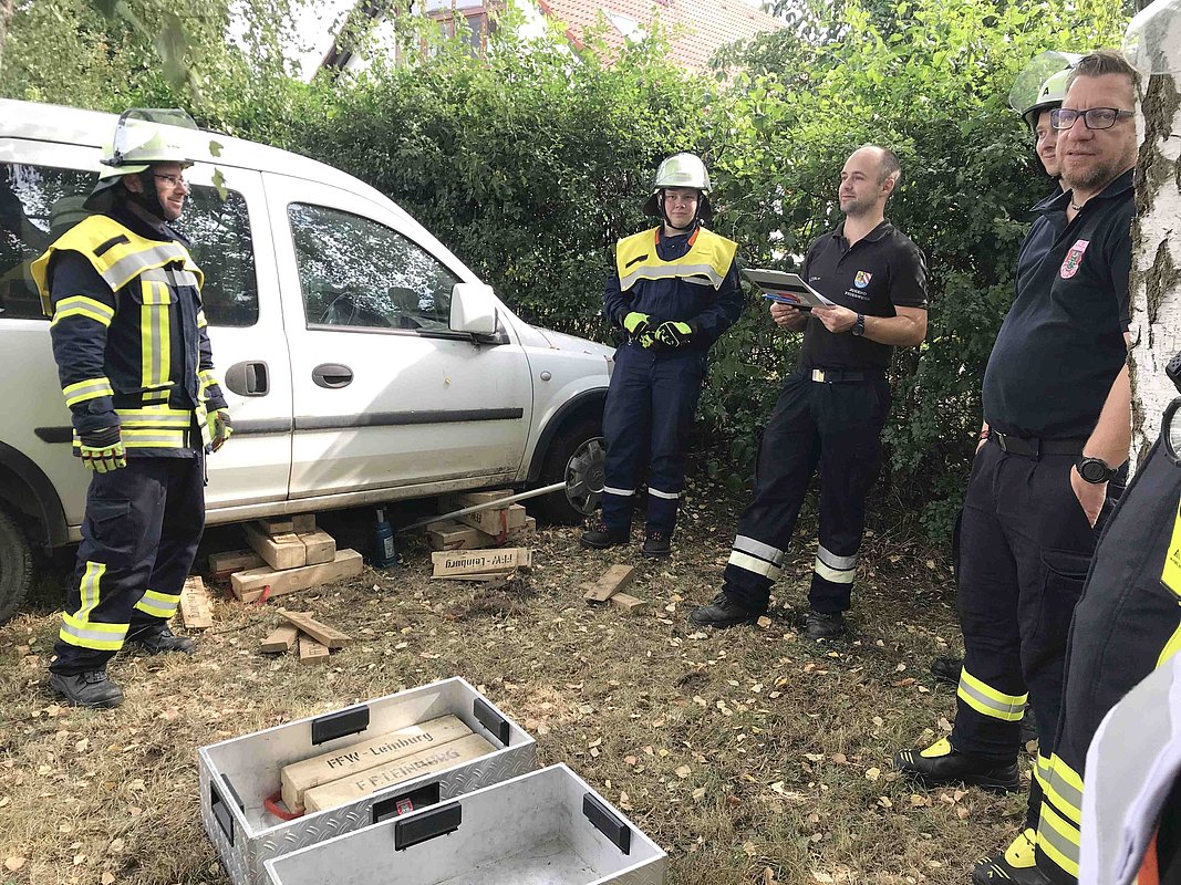 Die theoretische Prüfung erfolgte online. Bürgermeister Thomas Kraußer und die Kreisbrandinspektoren Christian Falk und Philipp Wolshöfer konnten sich von den Fähigkeiten der Prüflinge im praktischen Test überzeugen.